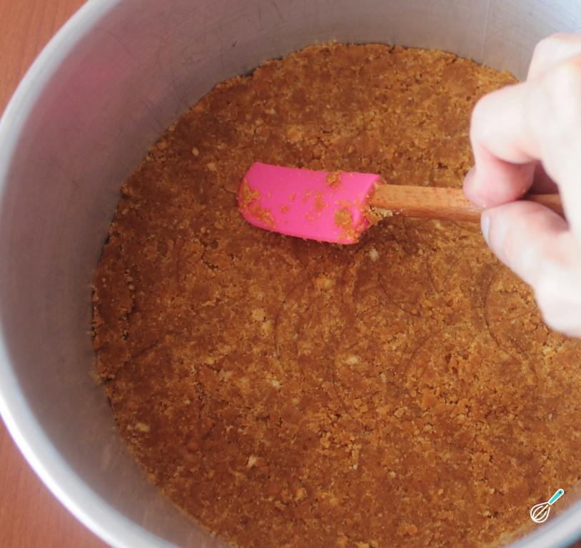 Prepare a torta de Romeu e Julieta no liquidificador começando por triturar os biscoitos no liquidificador. Misture com a manteiga derretida para formar uma farofinha úmida e use-a para forrar o fundo e as laterais de uma forma com fundo removível de 22 cm de diâmetro.