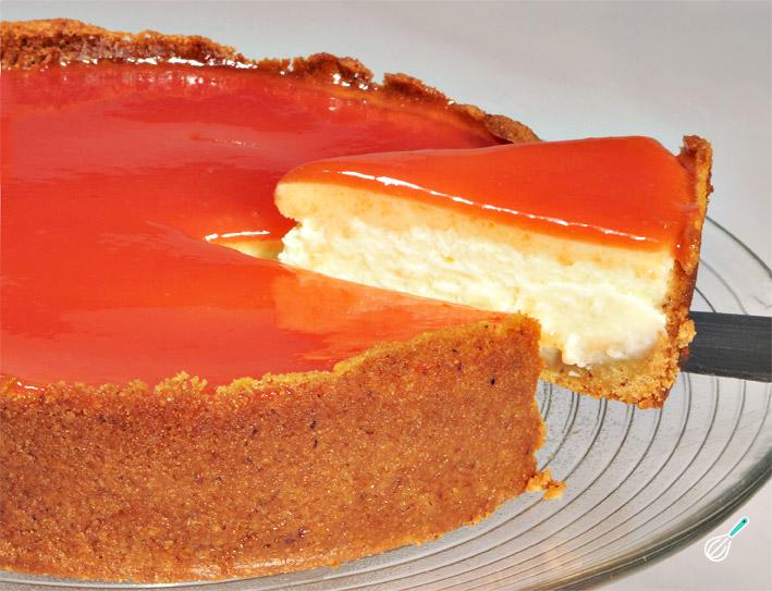 Despeje o recheio sobre a base de biscoito e leve ao forno a 150ºC aproximadamente 1 horas, mas depende muito de cada forno, o segredo é deixar assar lentamente até o creme ficar consistente. Separadamente derreta a goiabada com a água e use a mistura para cobrir o cheesecake depois de assar.