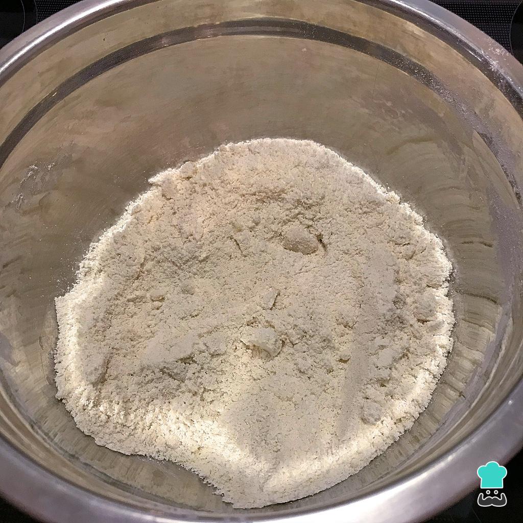 Prepare a massa da torta misturando a farinha de amêndoas com a farinha de tapioca e meia colher de sopa de sal.