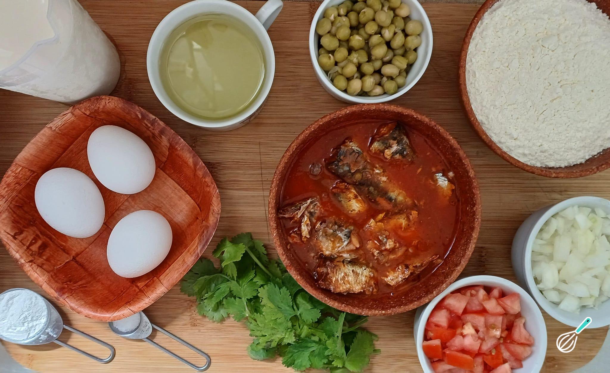 Separe os ingredientes necessários para preparar a torta de sardinha simples.