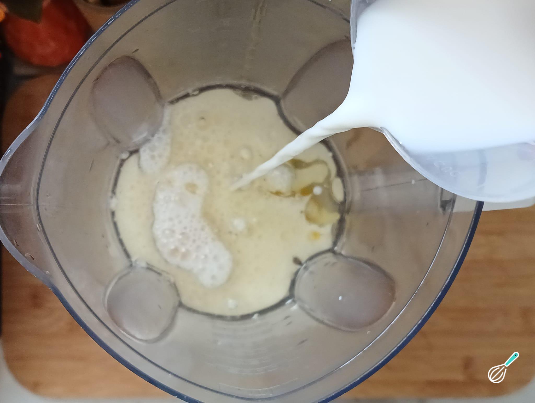 No liquidificador, coloque o óleo, os ovos, o sal e o leite.