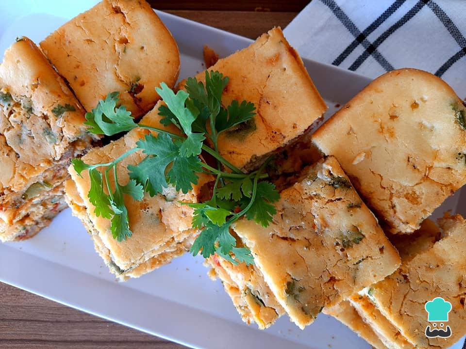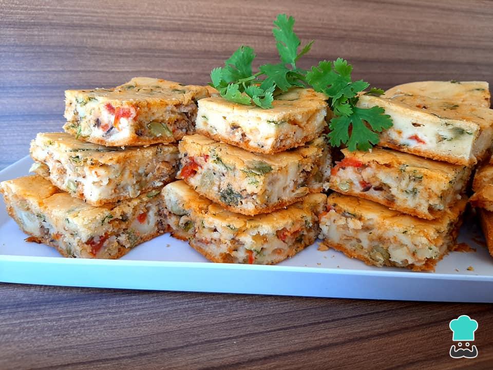 Sua torta de sardinha sem leite está pronta para você saborear! Espere amornar para cortar em quadradinhos, se preferir servir individualmente como um lanche!