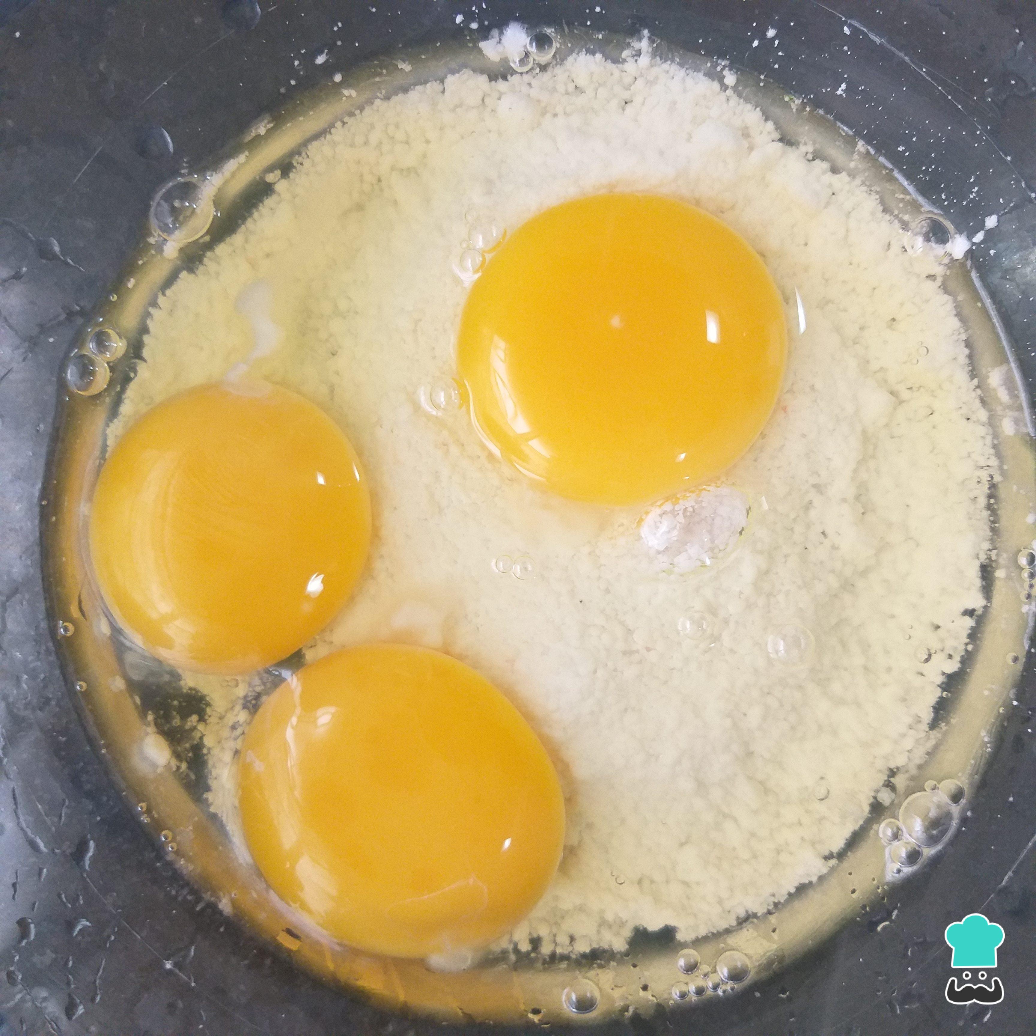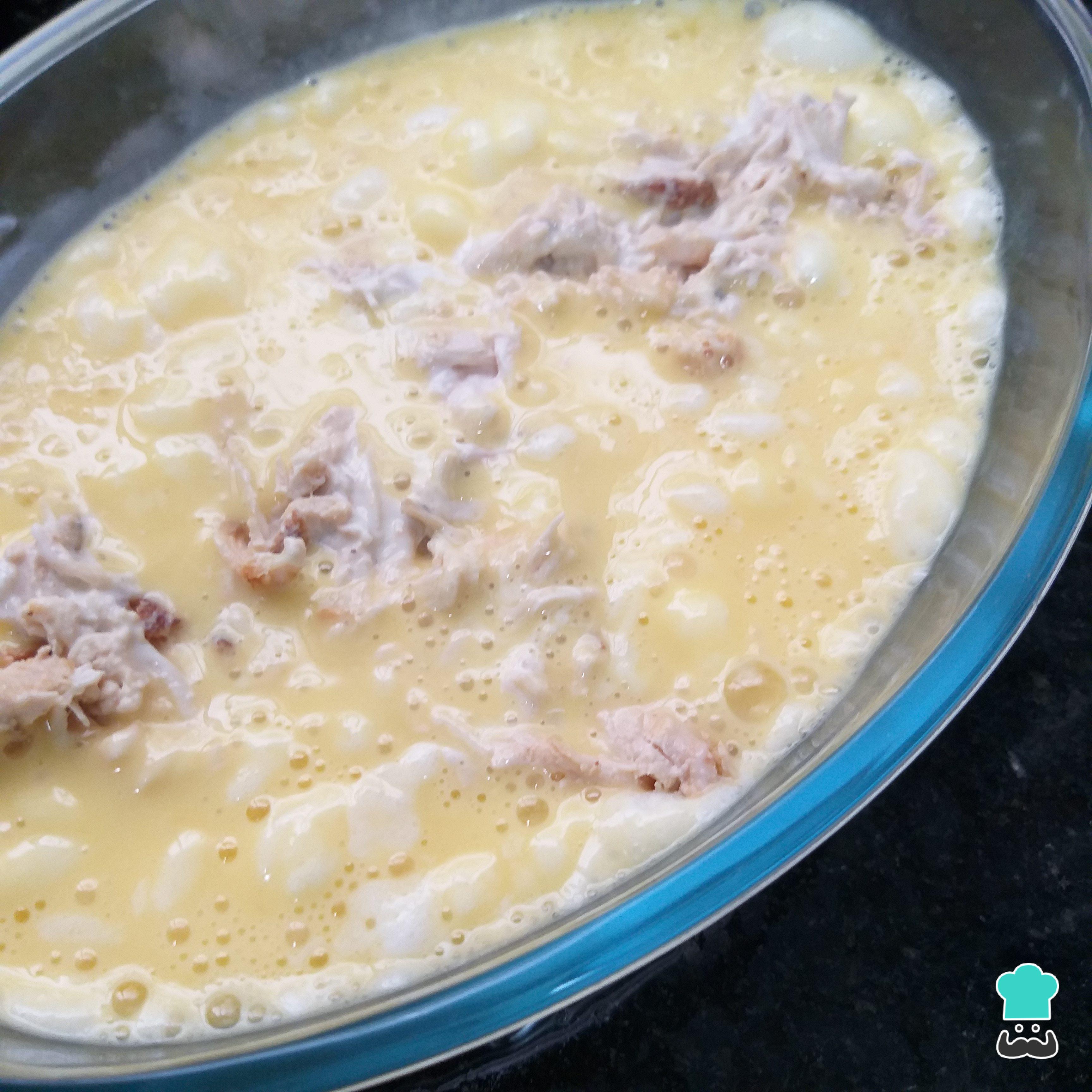 Em outra vasilha misture os ovos, a tapioca e o fermento. Essa é a massa da torta.