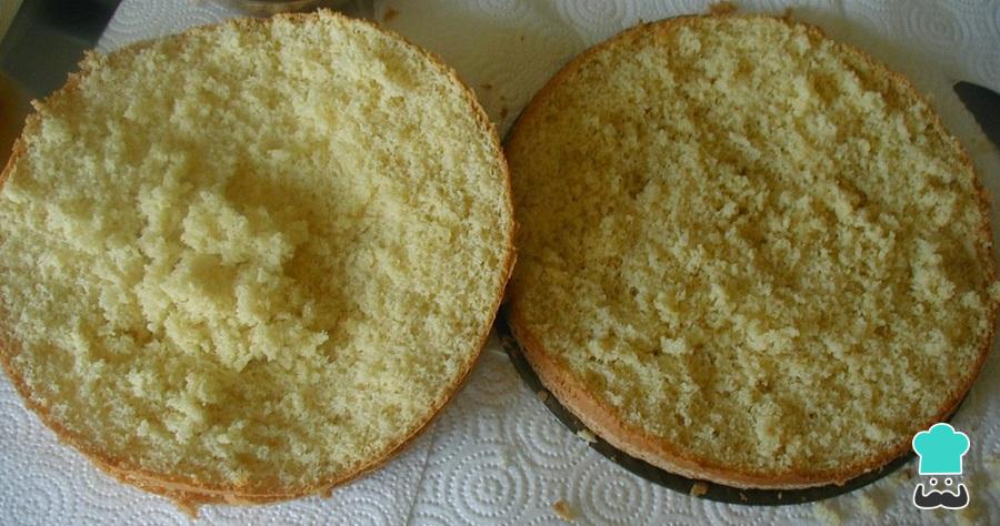 Dica: Se não quiser cortar o bolo a metade, pode simplesmente picá-lo com um garfo ou palito e regar a calda sobre ele.