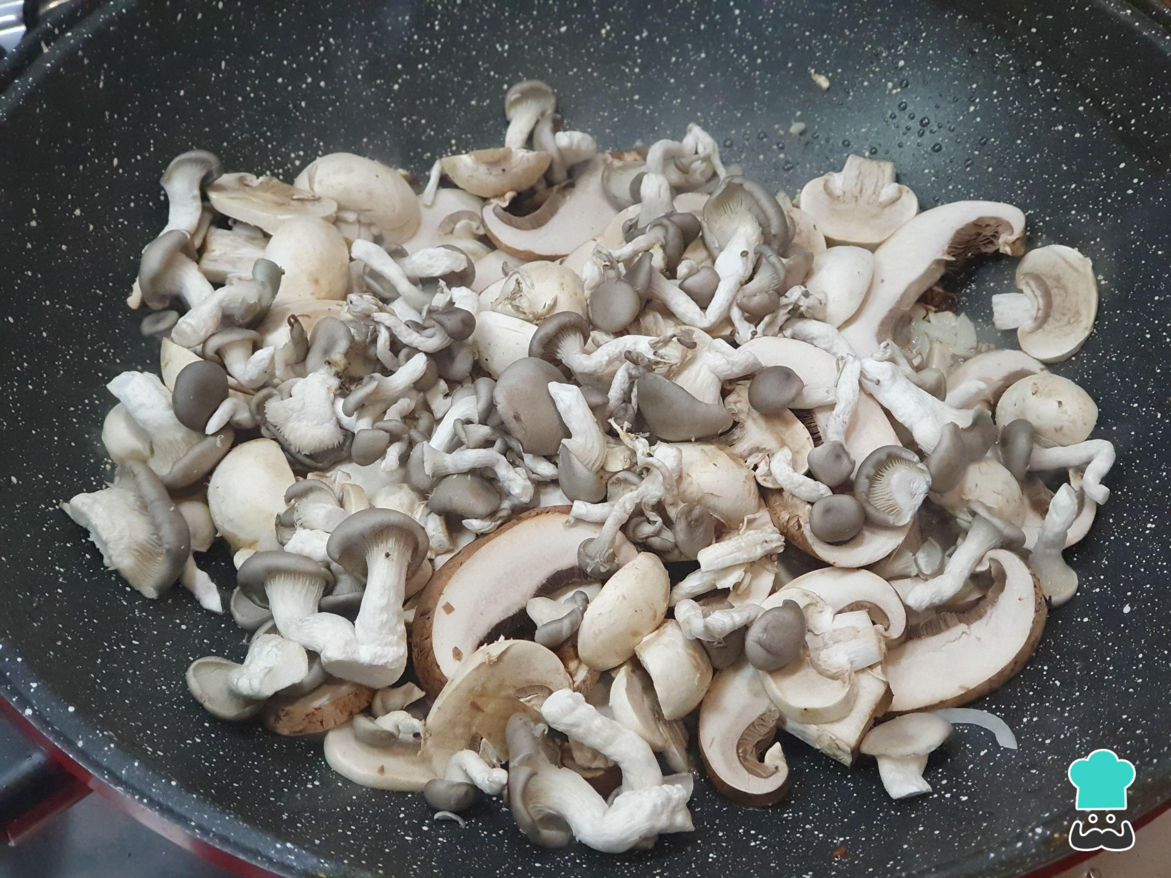 Junte o mix de cogumelos fatiados e misture muito bem. Tempere com sal a gosto.