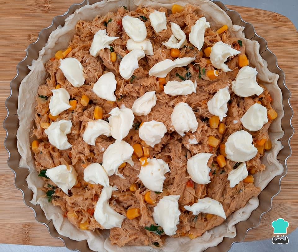 Dica: rechear a torta com o recheio já morno ou frio é importante para que a massa fique crocante depois de assar!