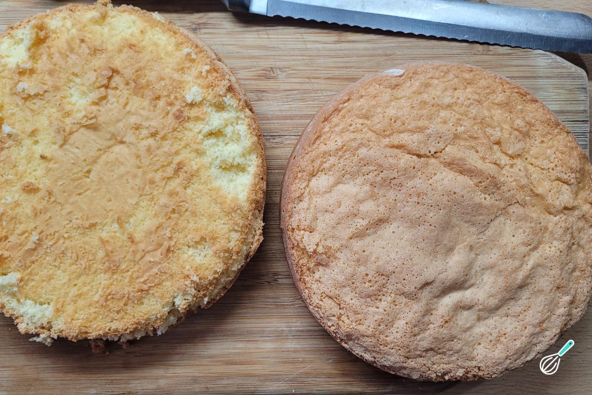 Quando o bolo estiver pronto, deixe esfriar, desenforme e corte ao meio.