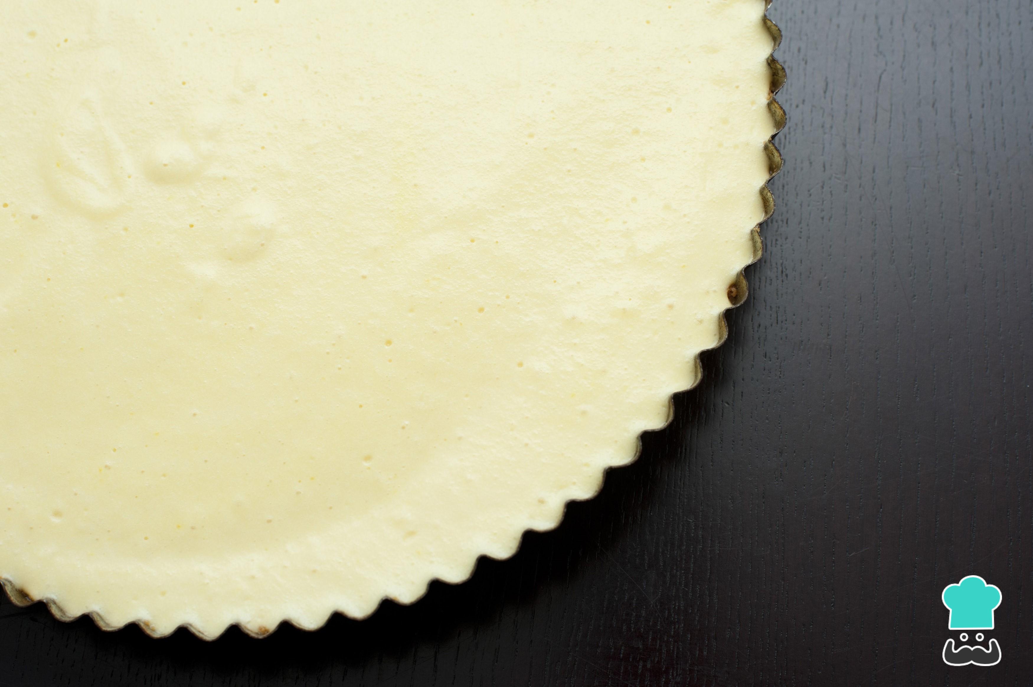 O passo seguinte desta torta doce de ricota é acrescentar ao creme do recheio o suco e as raspas de limão e o creme de leite. Misture muito bem e, finalmente, incorpore as claras de ovo em neve com cuidado, para que não percam o volume.