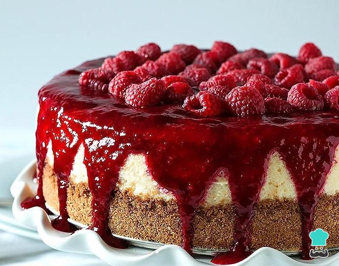 No momento de servir remova o aro da forma e cubra a torta gelada de ricota com a calda. Sirva em seguida e delicie-se com esta sobremesa suave!