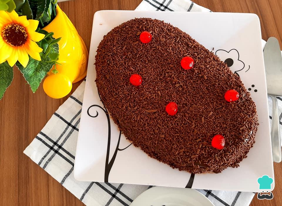 Dica: Se quiser, decore também com frutas, como morangos ou cerejas, para que fique esta torta de camadas ainda mais bonita.