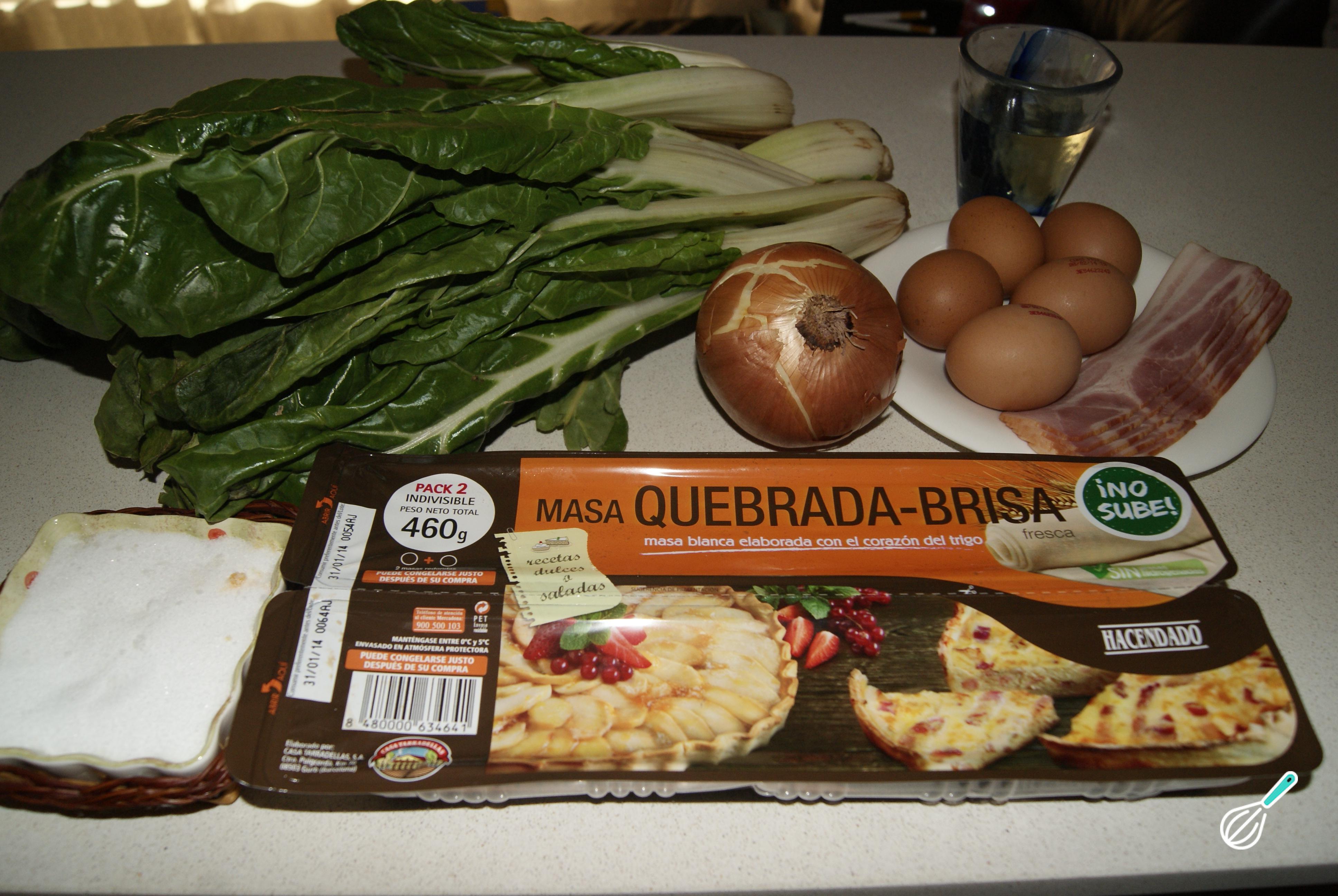 Para fazer esta torta pascualina de acelga, comece por preparar todos os ingredientes.