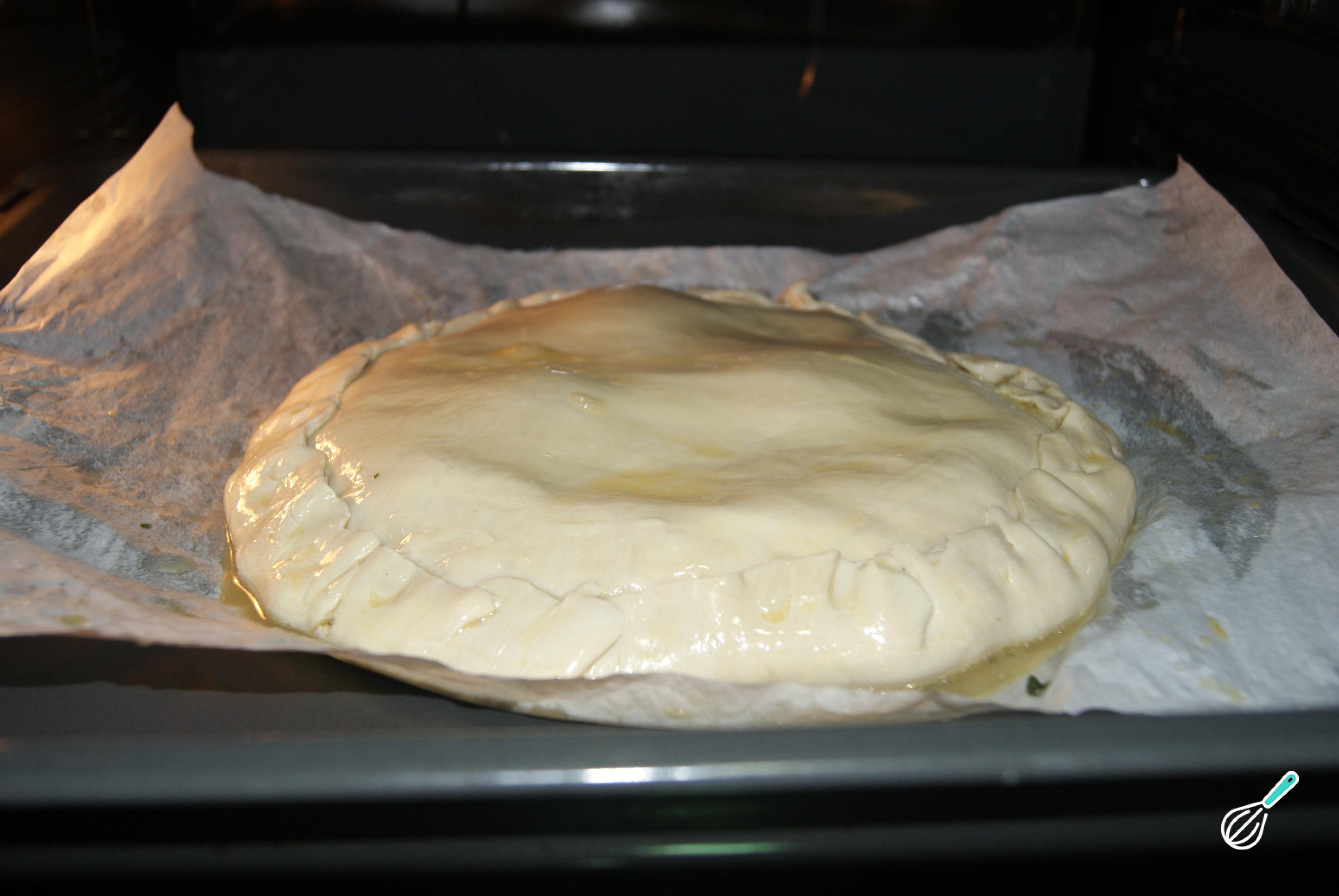 Leve a torta pasqualina ao forno preaquecido a 150 graus até dourar a seu gosto.