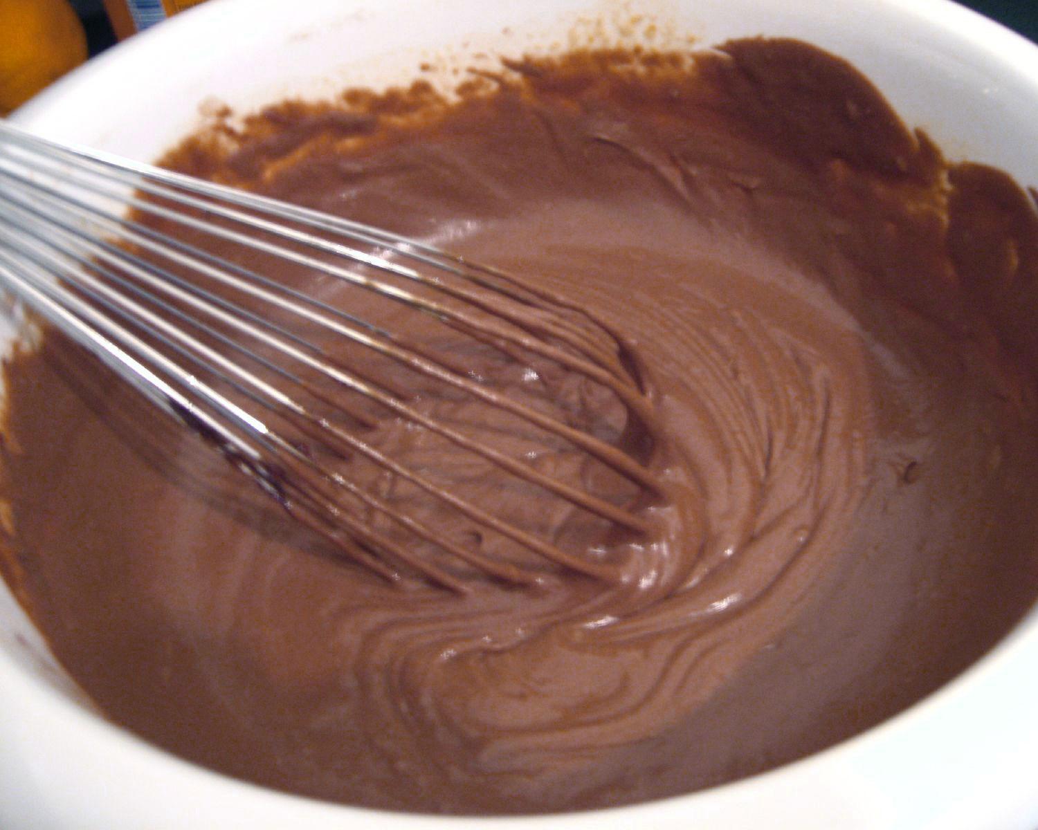 Adicione o chocolate peneirado (para evitar os grumos), o açúcar, a gordura de côco derretida e fria e, por último, as nozes picadas. Envolva tudo muito bem e delicadamente, para não perder o ar das claras.