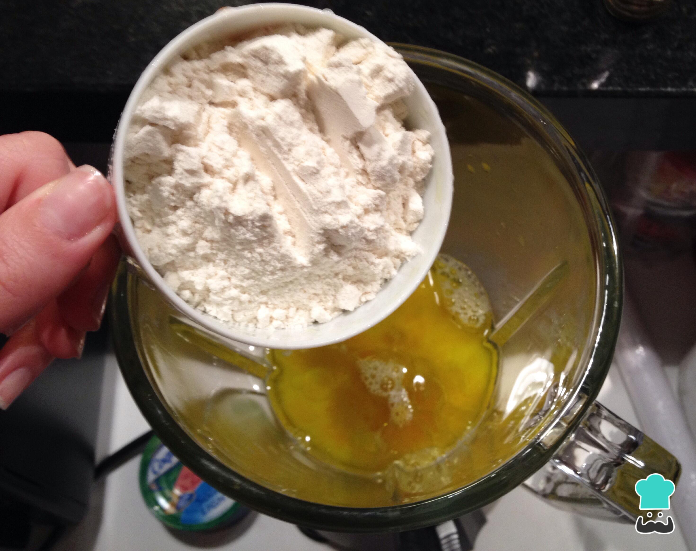 Para preparar esta torta salgada aberta o primeiro passo é fazer a massa. Para isso bata no liquidificador ou robot de cozinha todos os ingredientes respetivos até obter uma massa pastosa.