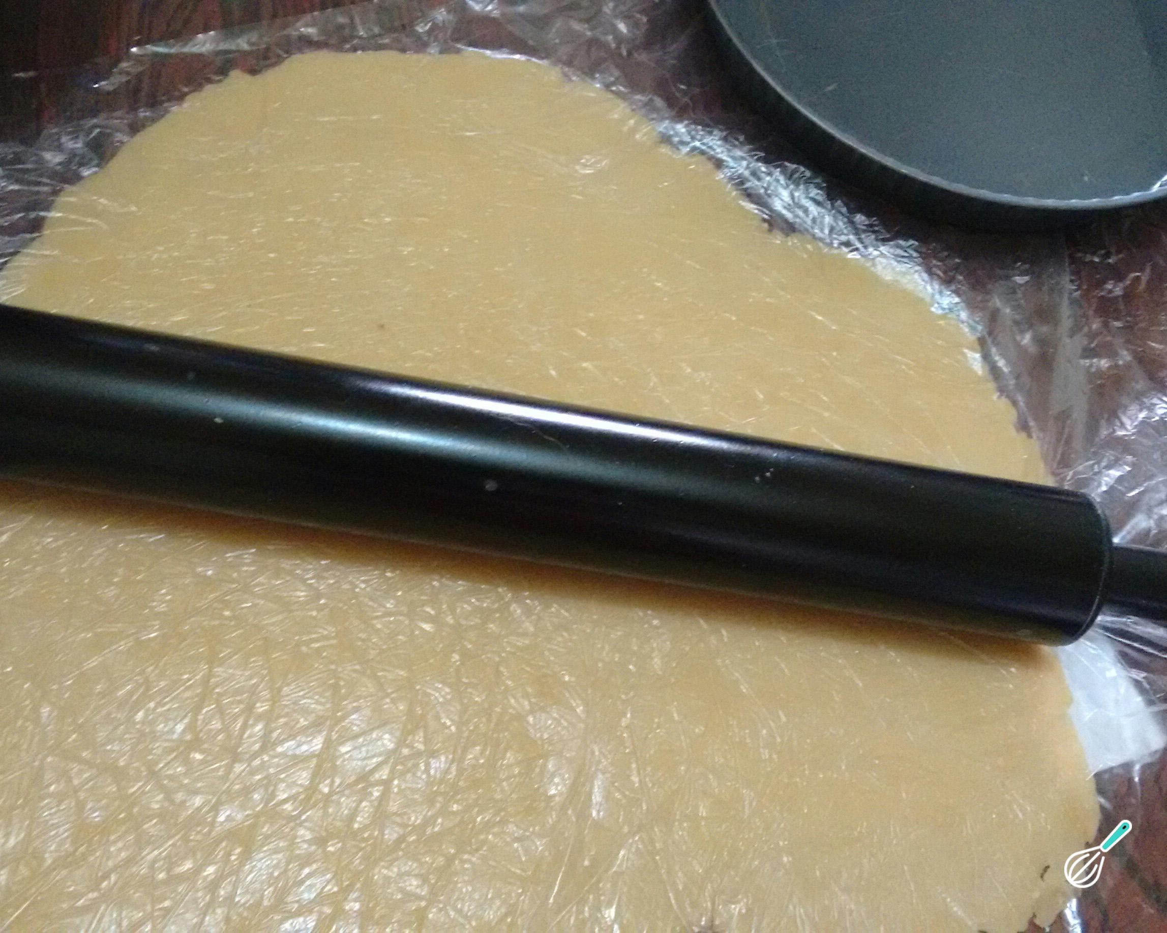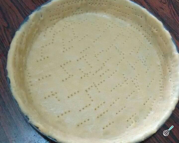 Cubra o fundo da forma com um dos discos de massa e fure toda a massa com um garfo, para a saída do ar. Leve ao forno pré-aquecido por 20 minutos.