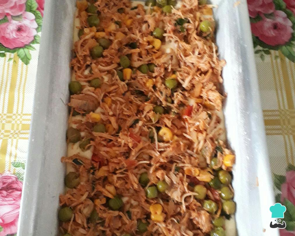 Dica: Eu coloquei também queijo mussarela ralado em cima do recheio.