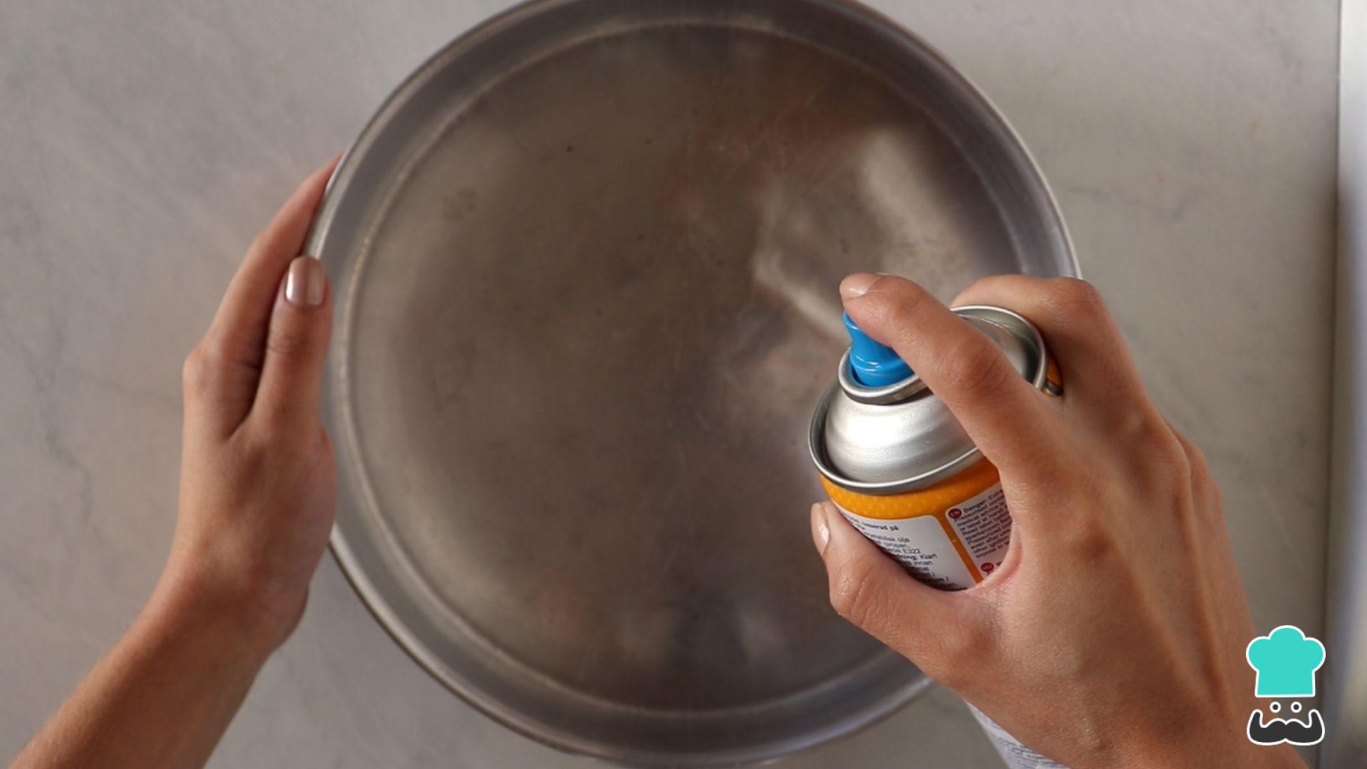 Unte uma forma do jeito tradicional, com manteiga e farinha, ou use um desmoldante como eu fiz.