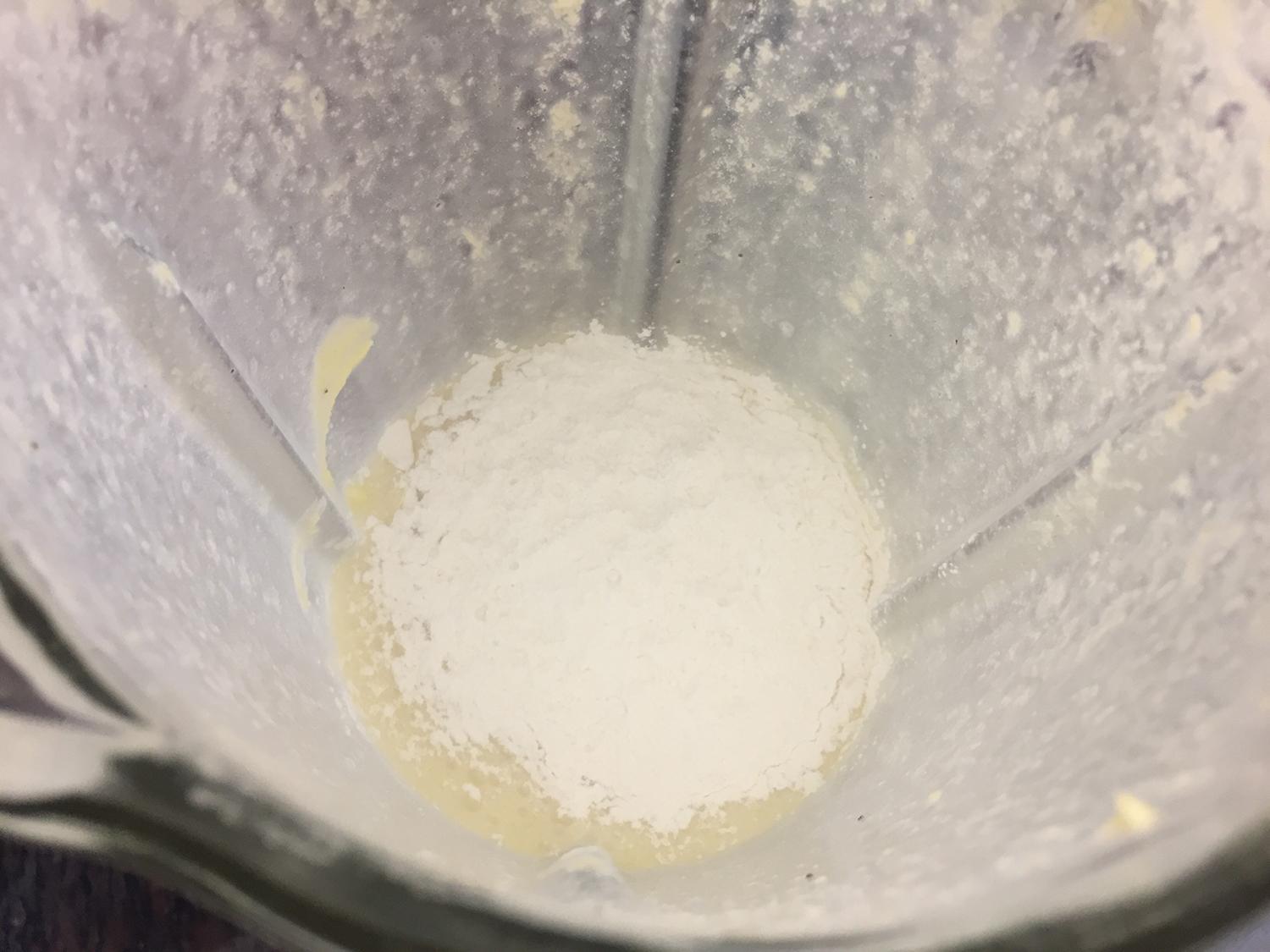 No liquidificador bata o leite, o óleo e os ovos da massa desta torta salgada de marmita. Pouco a pouco junte a farinha, a maisena e o queijo, continue batendo até virar uma massa cremosa e ligeiramente líquida, e finalize com o fermento e o sal.