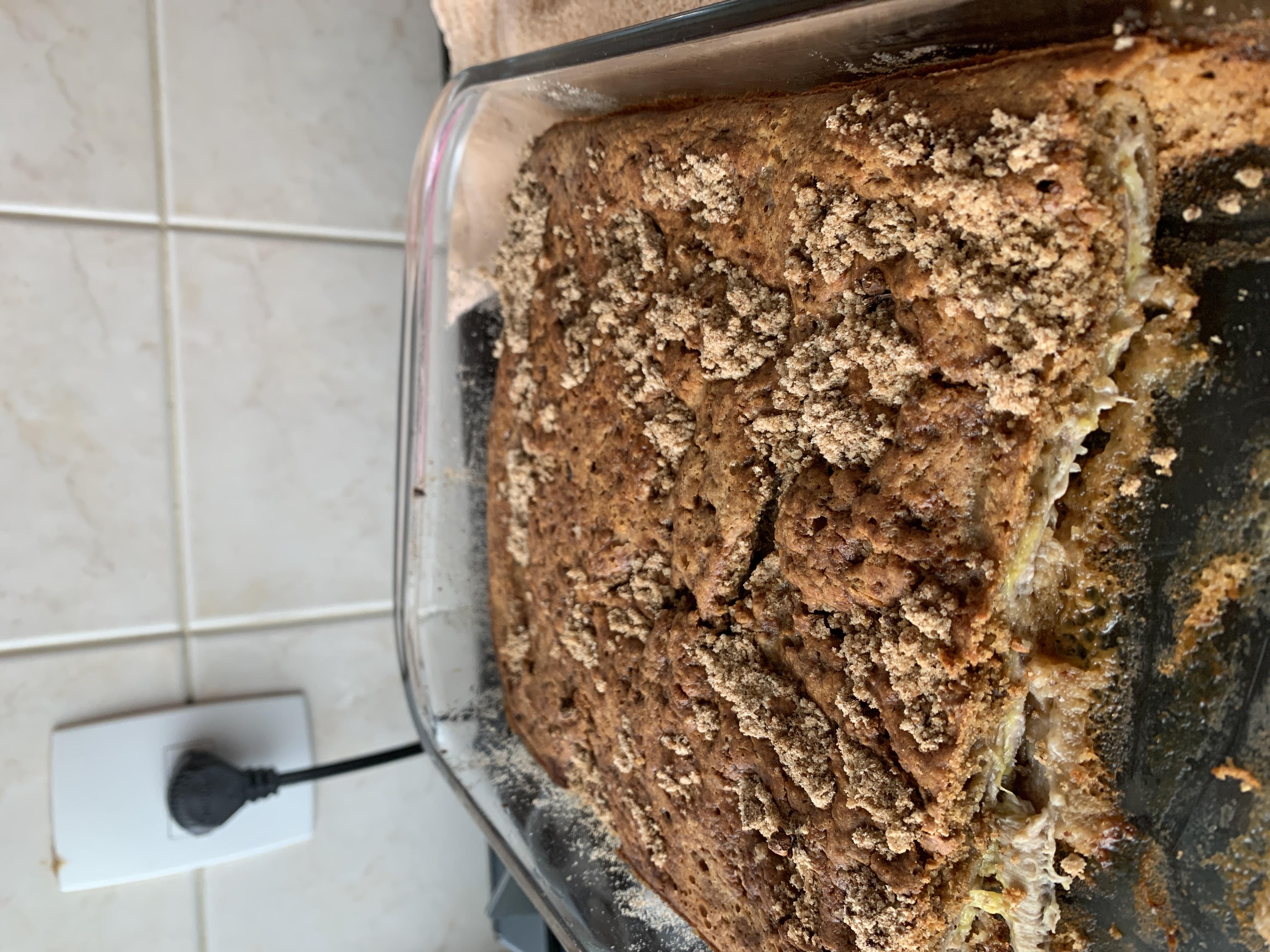 Retire sua torta preguiçosa de banana do forno e reserve para esfriar um pouco antes de servir. Poderá acompanhar com uma bola de sorvete de baunilha, ficará deliciosa!