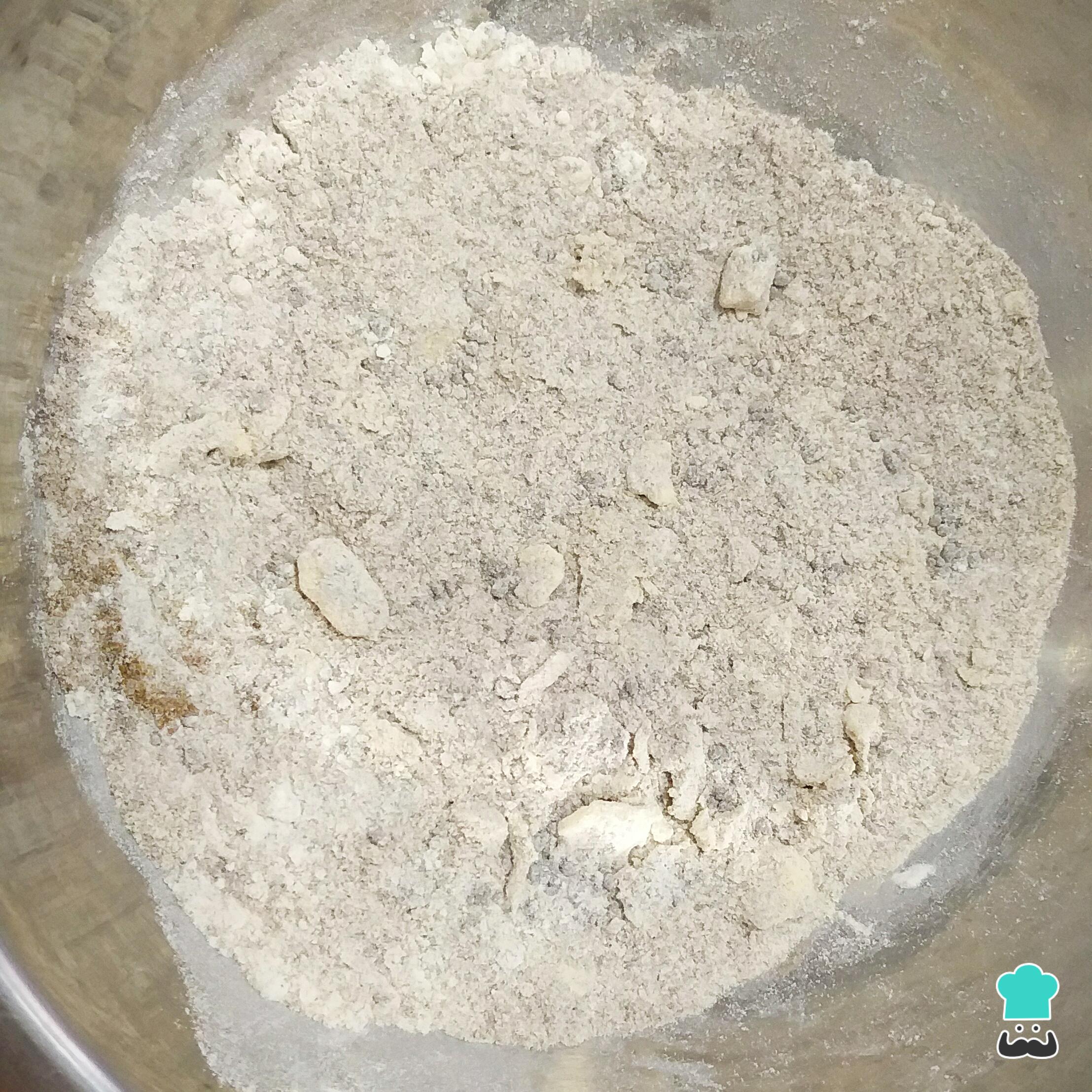 Em outra vasilha misture os ingredientes secos: a farinha, o açúcar, o fermento, o bicarbonato, a canela, o cravo e a manteiga. Reserve.