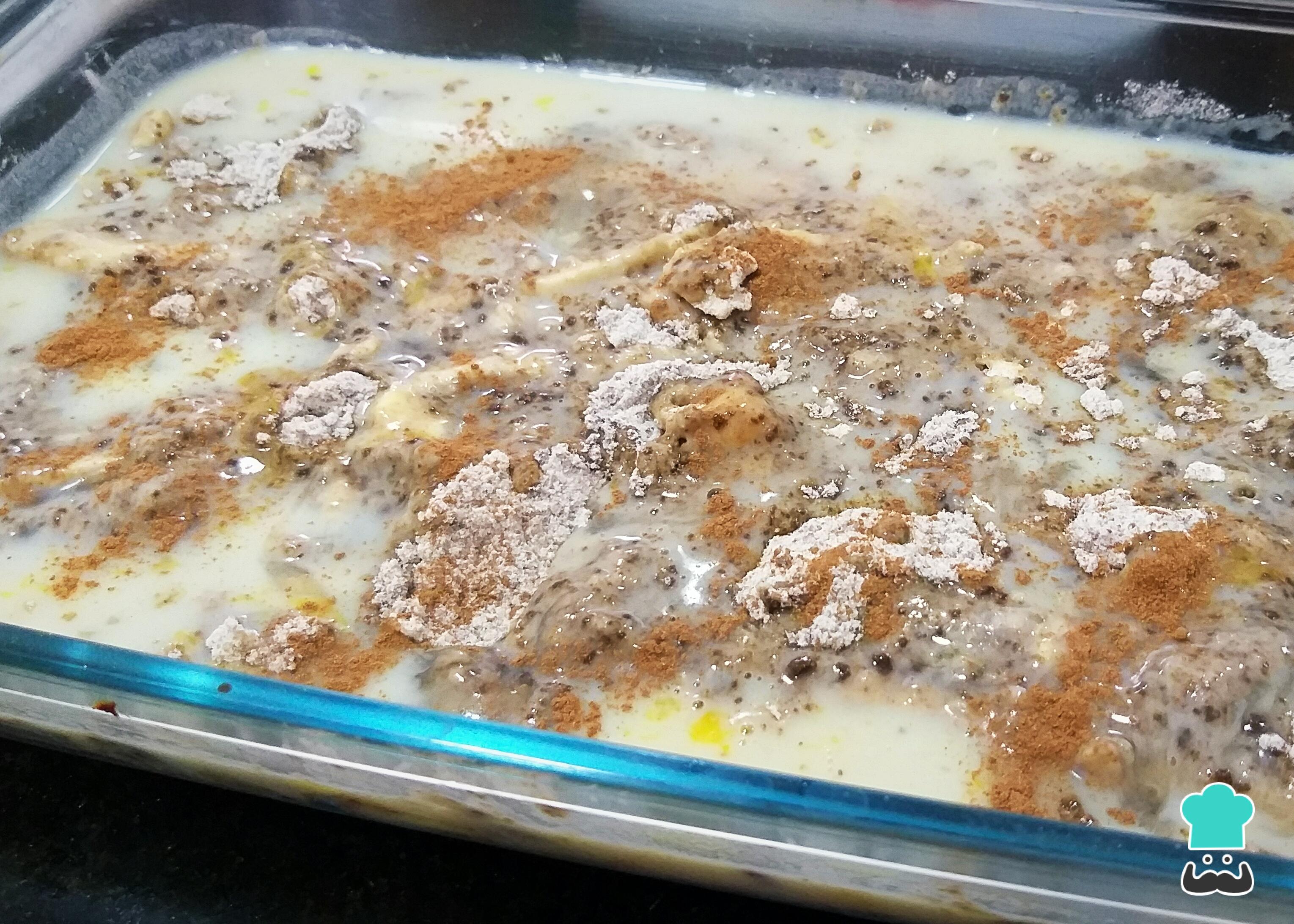 Despeje a mistura do leite com ovo e leve ao forno pré aquecido a 180 graus por cerca de 30 minutos ou até a superfície ficar douradinha.