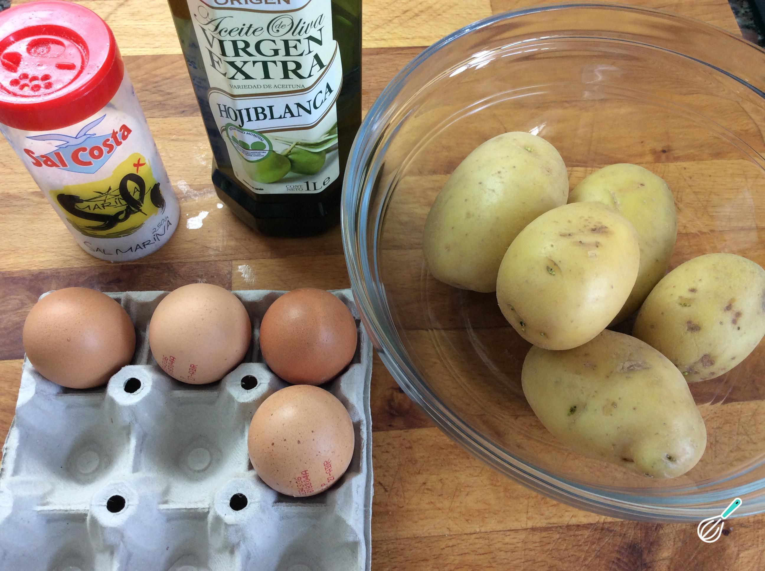 Antes de mais, junte todos os ingredientes necessários para esta tortilha no forno. Nesta receita não incluímos a cebola mas, se você quiser, pode adicionar.