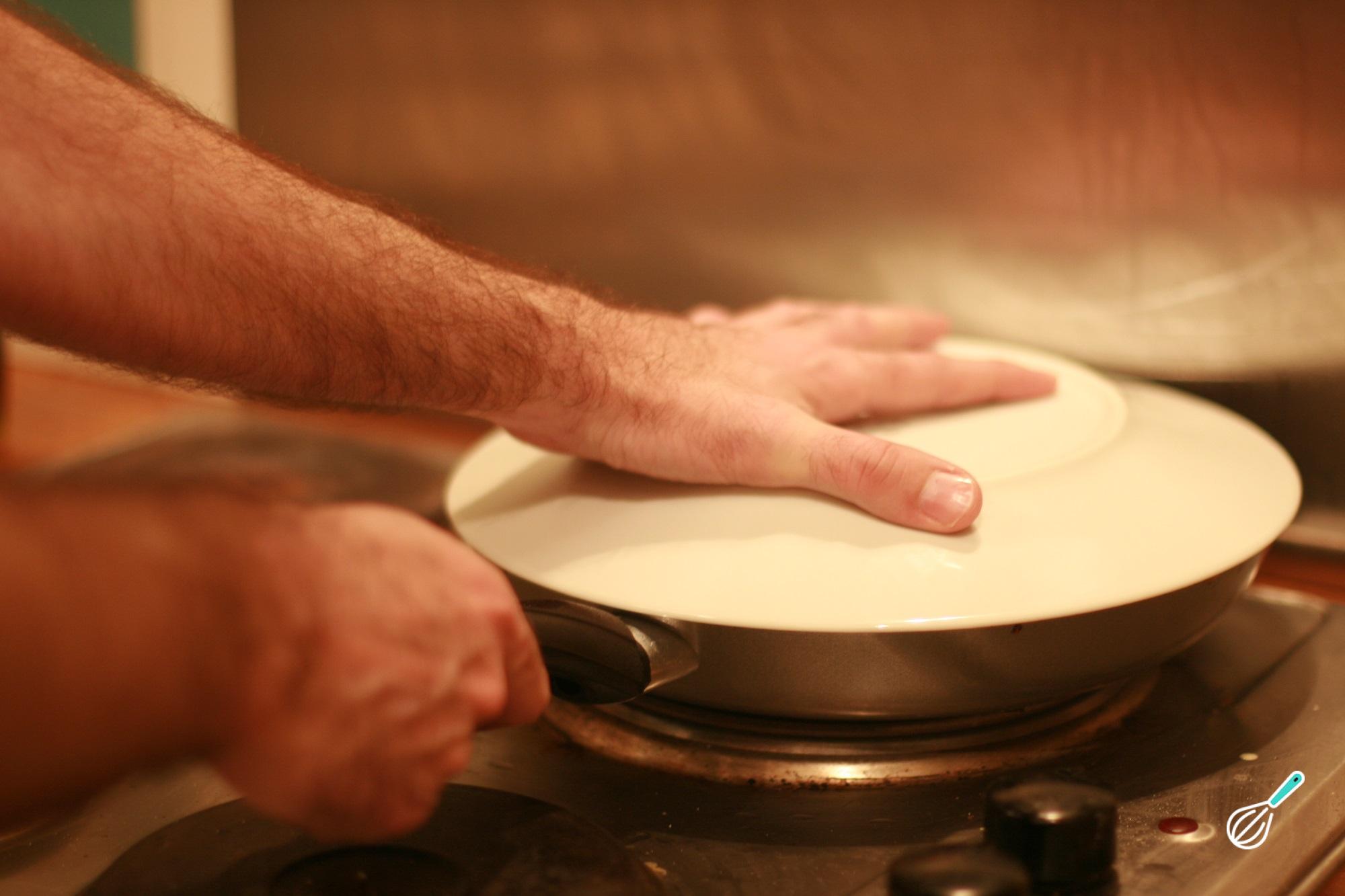 Assim que ficar quente, coloque a pasta para fazer a tortilha de camarão. Cozinhe durante 5 minutos e adicione o camarão, deixando cozinhar por outros três. Com a ajuda de um prato, vire a tortilha de camarão e deixe cozinhar por mais 8 minutos, aproximadamente.