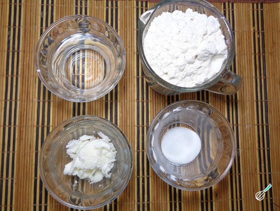 Comece por juntar todos os ingredientes necessários, para as tortilhas de farinha de trigo, para assim ser mais fácil de preparar a sua receita.