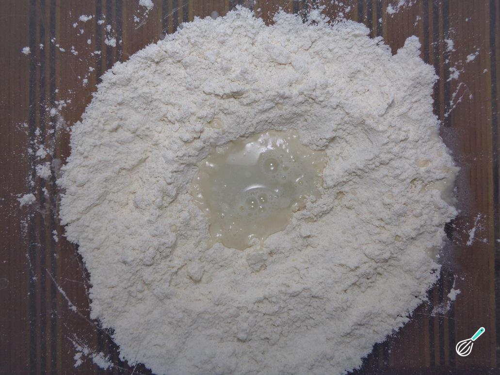 Vá adicionando a água aos poucos, até obter uma massa que não se pegue nas mãos, nem na taça.