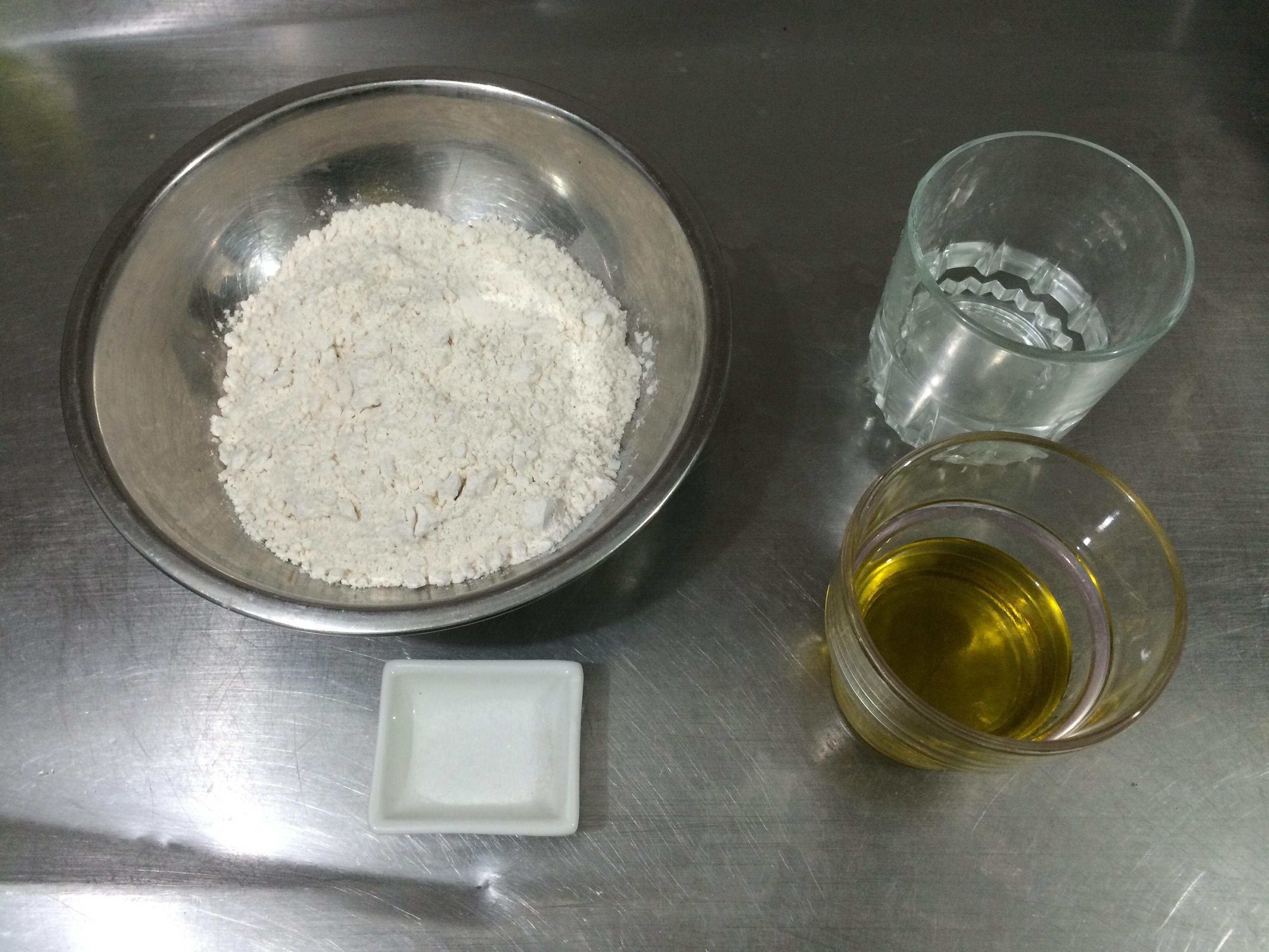 O primeiro passo desta receita de tortilhas mexicanas caseiras é reunir os ingredientes.