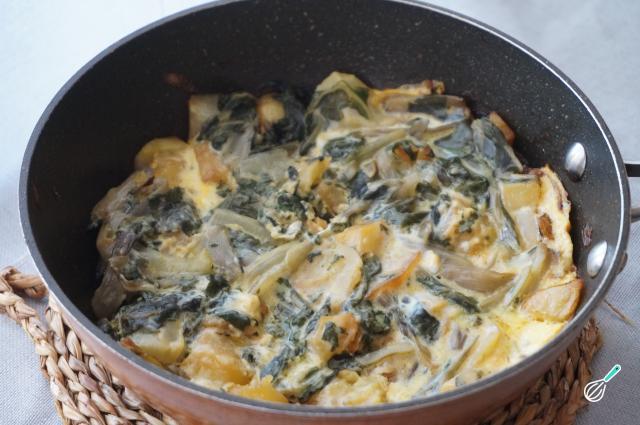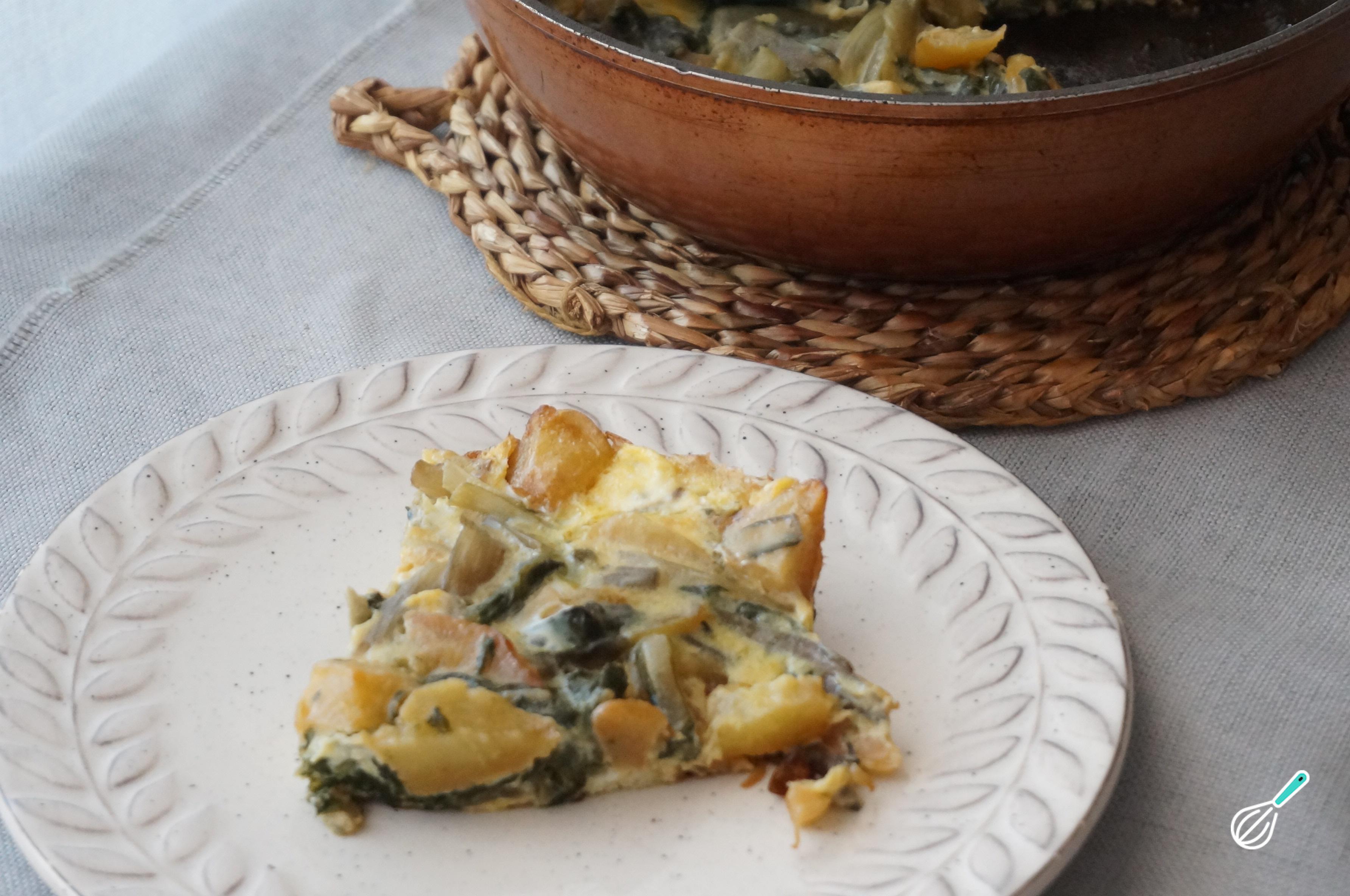 Tortilla de acelga: um prato saboroso e simples de preparar! É também uma opção muito completa porque contém carboidratos, vegetais e a proteína do ovo, o que o torna ideal para servir como prato único, sobretudo se você segue uma alimentação sem carne e sem peixe.
