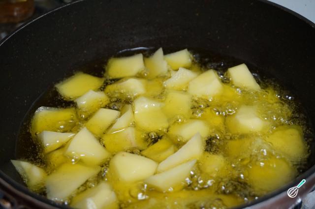 Dica: adicione as batatas no azeite ou óleo apenas quando ele estiver quente, para evitar que as batatas fiquem gordurosas.