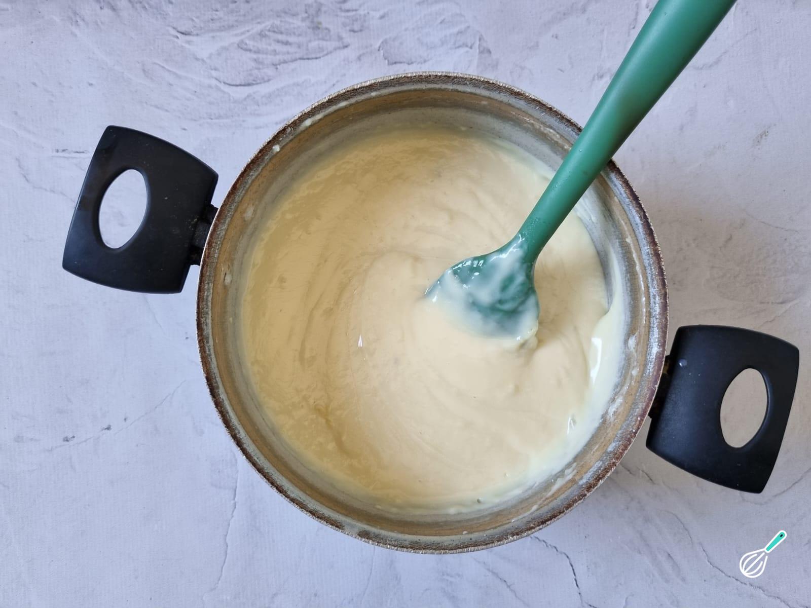 Enquanto a massa assa, prepare o creme para o recheio.
