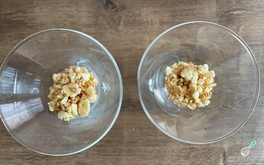 Coloque no pote um pouco do biscoito processado.