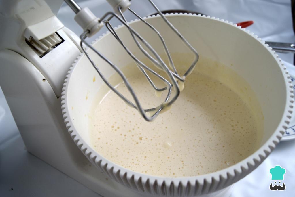 Em seguida, adicione as gemas uma a uma, e bata até incorporar por completo.