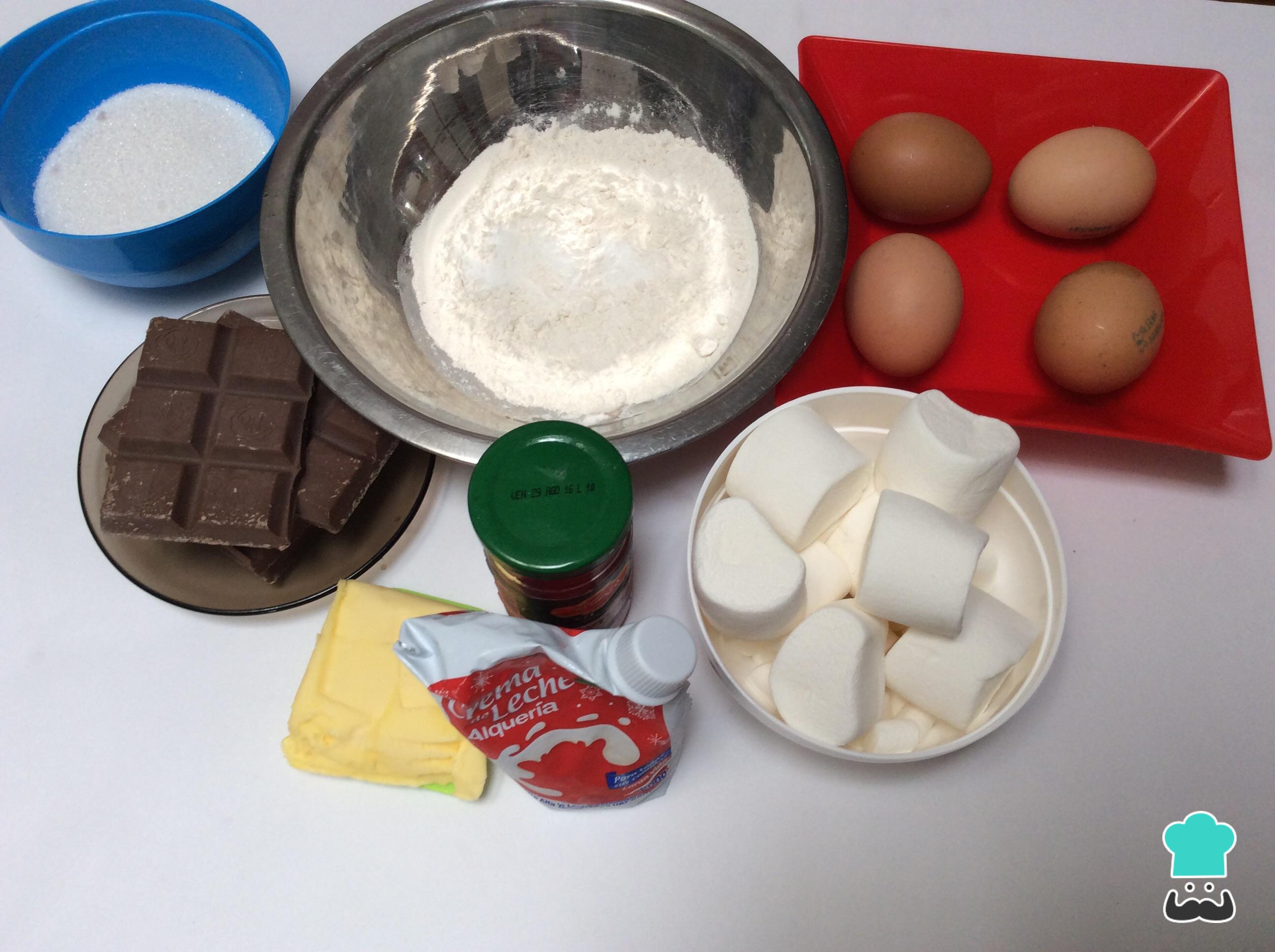 Para fazer esta receita de tronco de Natal fácil comece por reunir os ingredientes necessários. Neste caso vamos preparar um tronco de Natal com recheio de marshmallows.