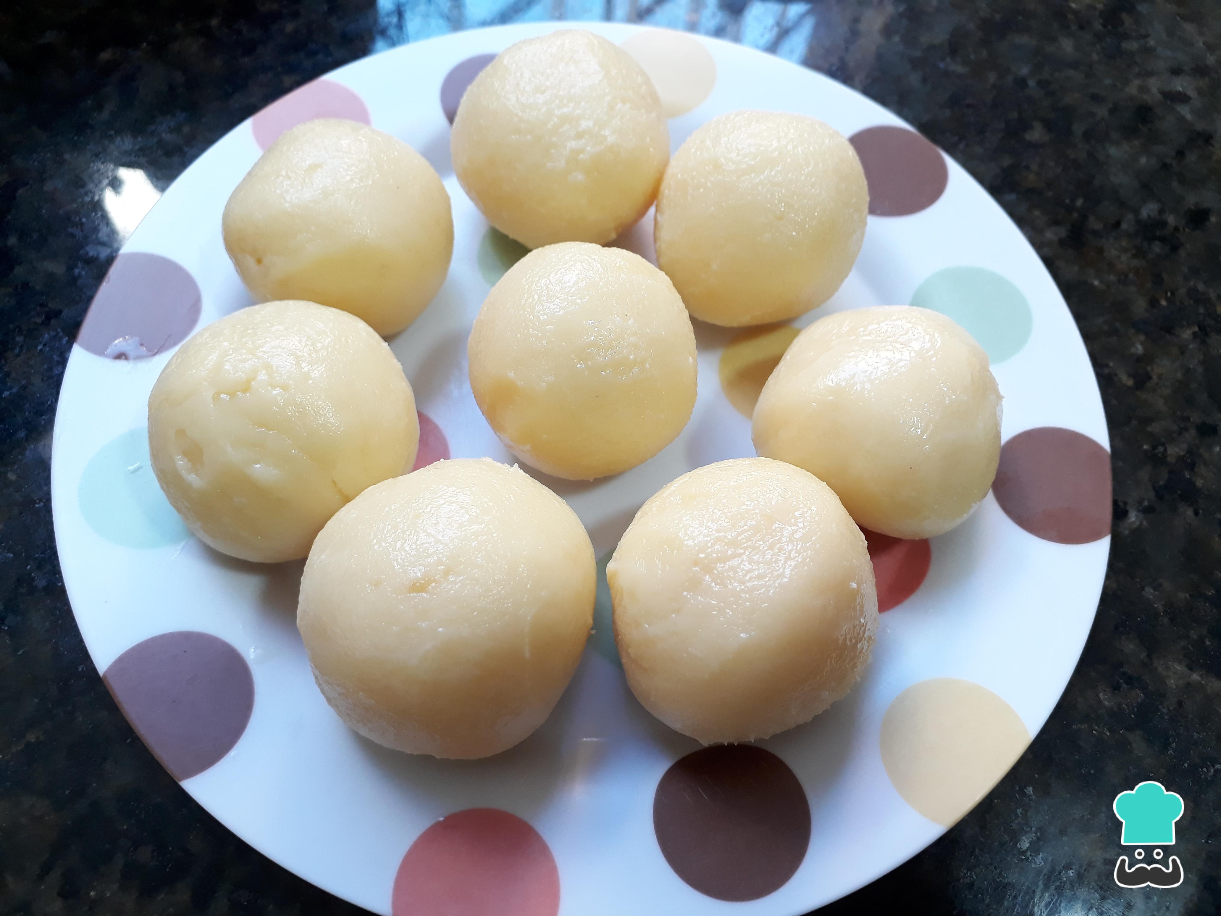 Quando o recheio de leite Ninho já estiver bem frio, modele bolinhas.