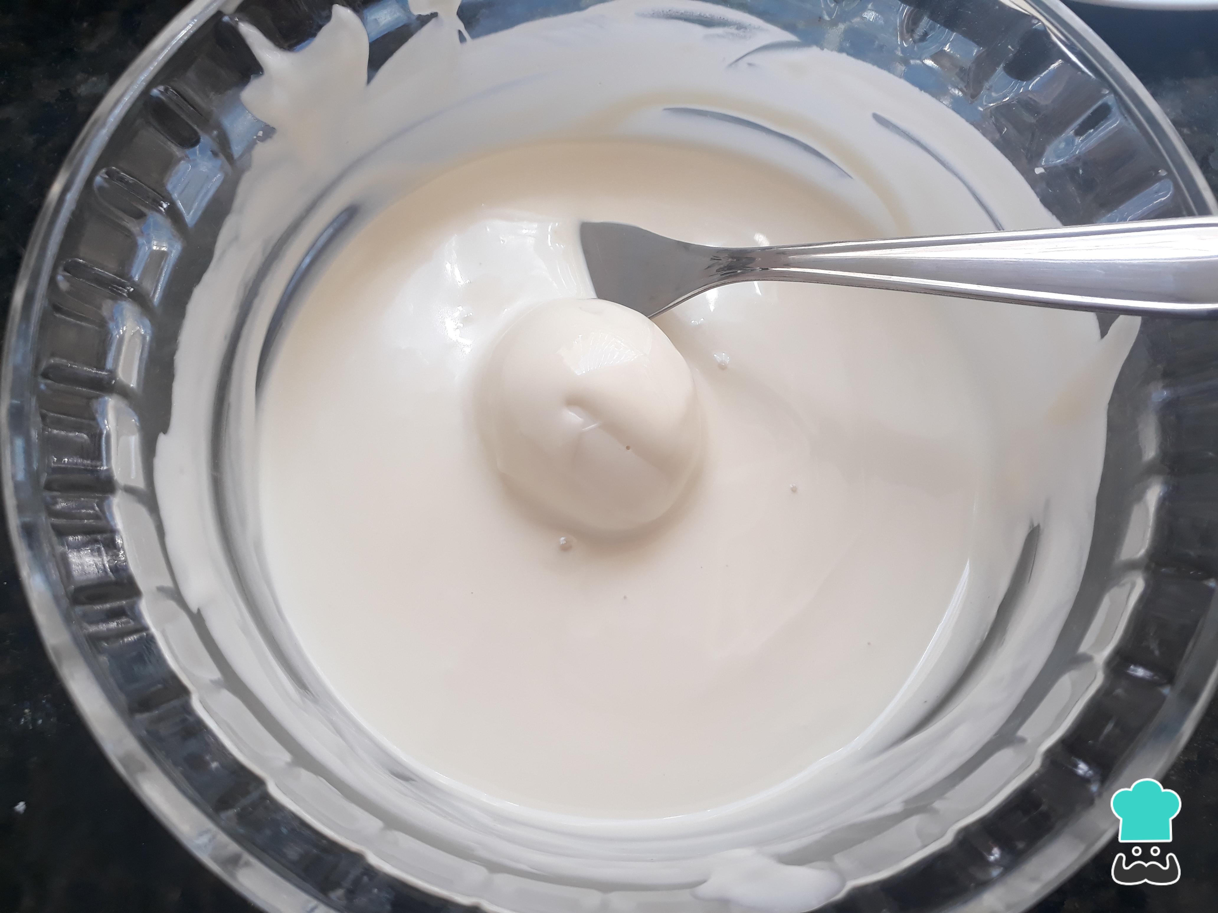 Derreta o chocolate branco e passe as bolinhas no chocolate 2 vezes, para que fiquem com uma casquinha bem grossa e firme. Se necessário, leve por alguns minutos para geladeira antes de passar pela segunda camada.