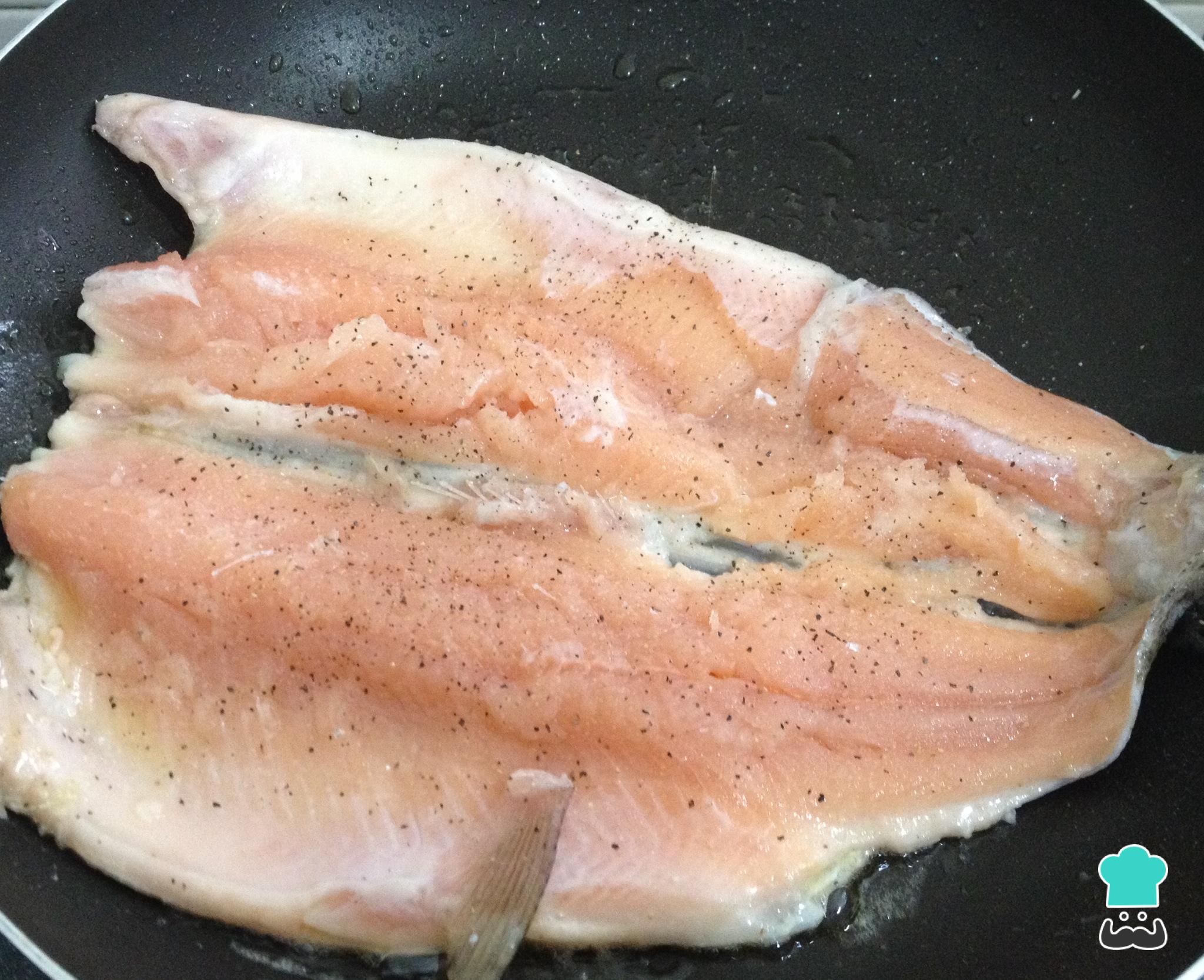 Vire a truta e cozinhe por mais 2 minutos, adicione um pouco de suco de limão.