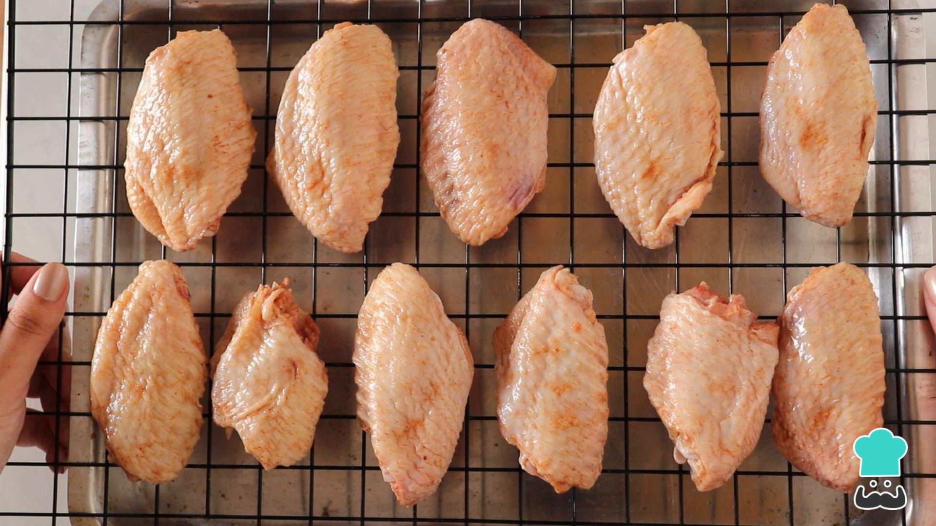 E por falar em crocância, a dica agora vem na hora de temperar a asinha: para dar sabor, páprica doce, açúcar mascavo e sal. E nessa misturinha colocamos ainda uma colher de chá de fermento químico (sim, aqueles fermentos de bolo mesmo!).