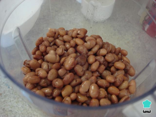 Para preparar esta receita de tutu de feijão à mineira comece por bater no liquidificador os feijões e o caldo até obter uma pasta.