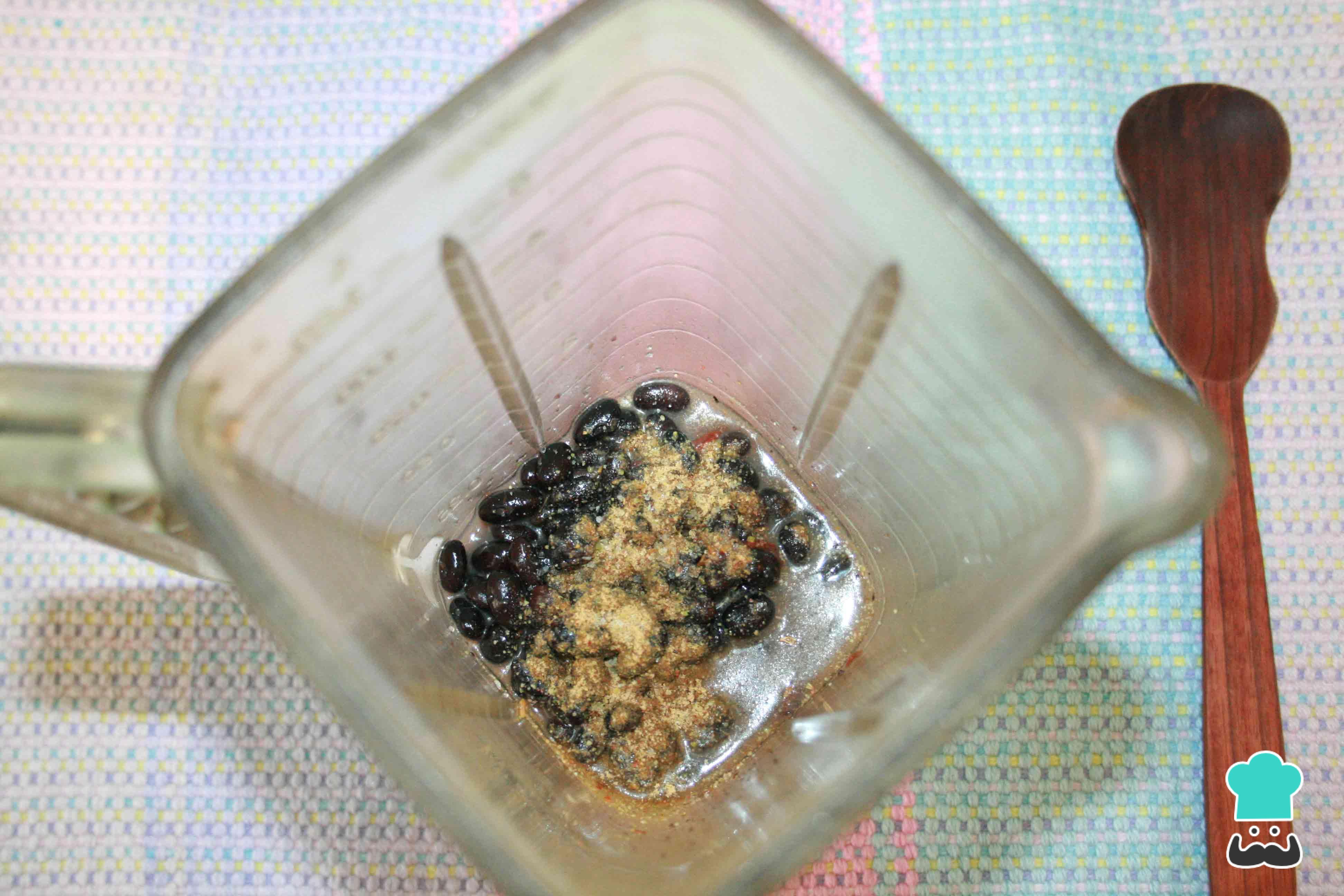 Coloque o feijão e sua calda no liquidificador e um pouco mais de cominho, sal e pimenta se achar necessário. Também pode acrescentar um pouco mais de azeite, o sabor ficará mais apurado. Bata tudo muito bem.