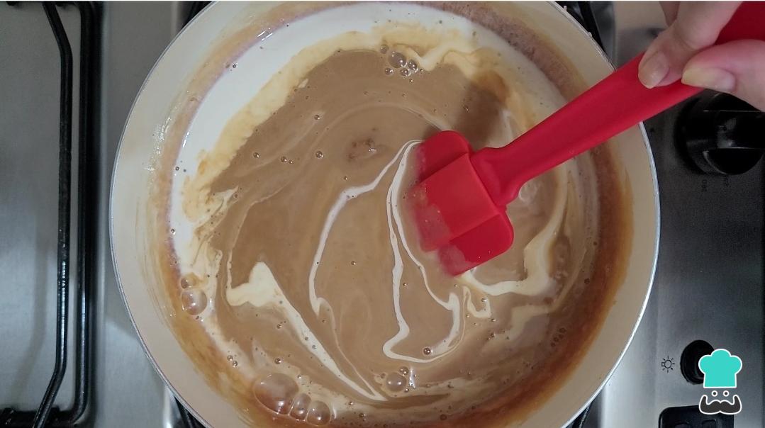 Dica: À medida que vai esfriando, o caramelo engrossa e pega consistência. Por isso, não tenha pressa de tirá-lo do fogo, porque precisamos dele neste ponto.