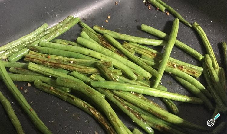 Sirva em seguida sua vagem assada no forno simples como acompanhamento de, por exemplo, sobrecoxa desossada frita. Bom apetite!