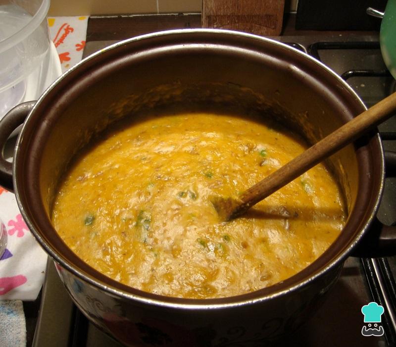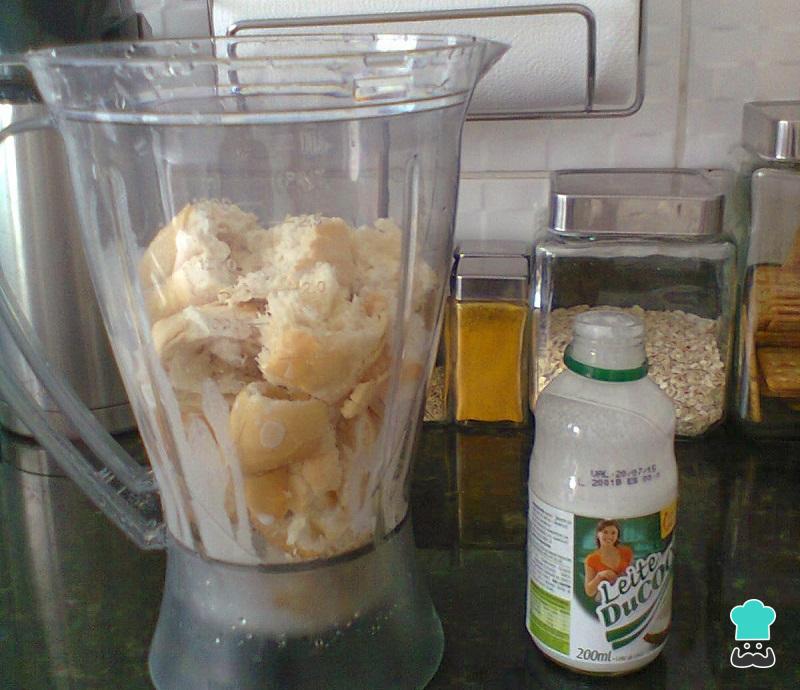 No liquidificador prepare o mingau do vatapá batendo os pães com o respetivo leite, o leite de coco e o cheiro verde em quantidade a gosto. No final deverá obter uma massa consistente.