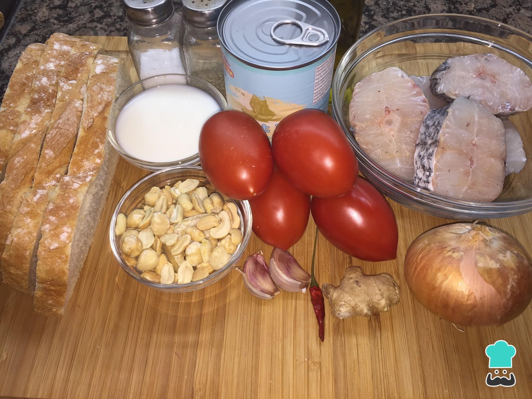Comece este vatapá de peixe por juntar todos os ingredientes necessários.