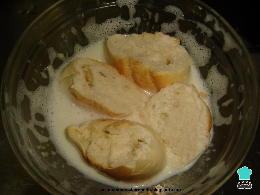 Para preparar este vatapá, comece por hidratar os pães com o leite de coco e o leite comum. Deixe repousar durante os passos seguintes.