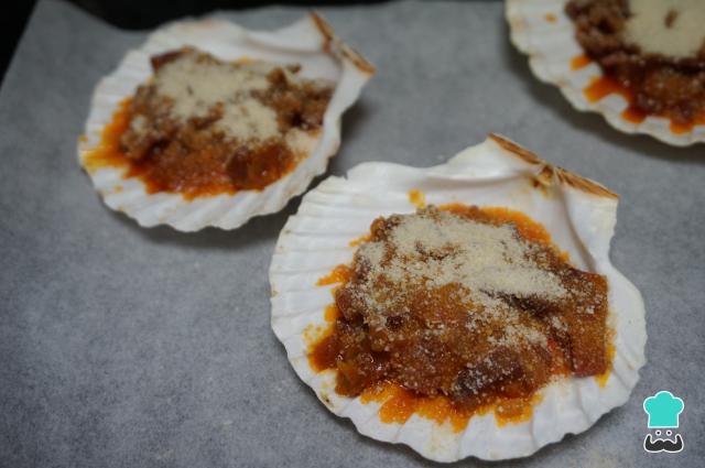 Dica: embora esta seja o modo de preparo tradicional das vieiras à galega, você pode substituir a farinha de rosca por queijo ou adicionar ambos.