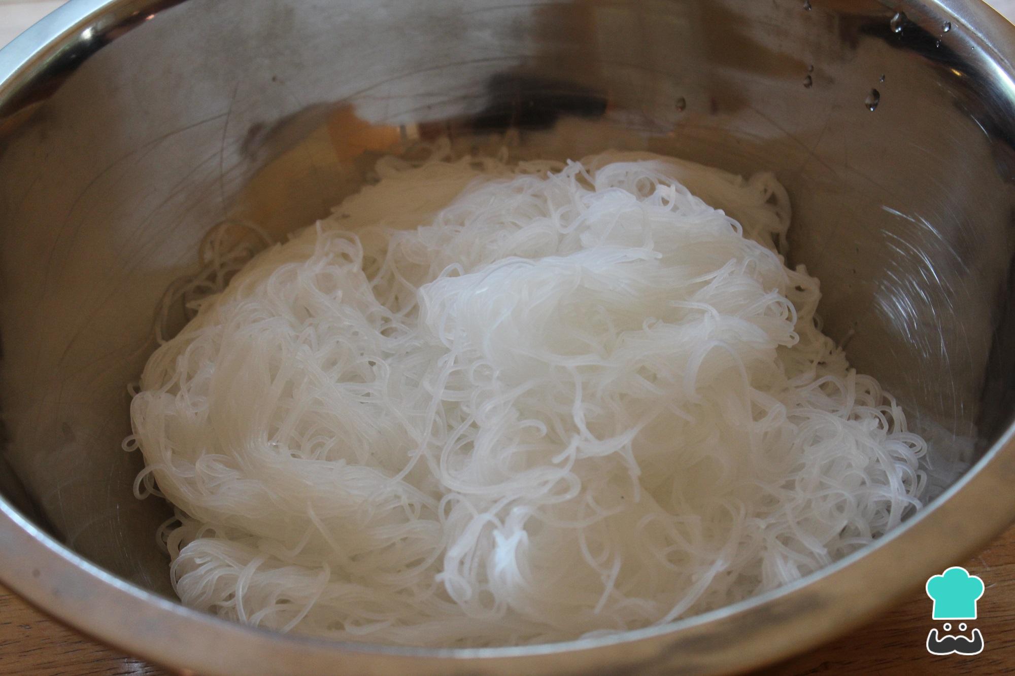 Hidrate o bifum e refogue-o na frigideira com um alho picado, pimenta do reino e pimenta cambuci. Refogue os cogumelos na manteiga separadamente.