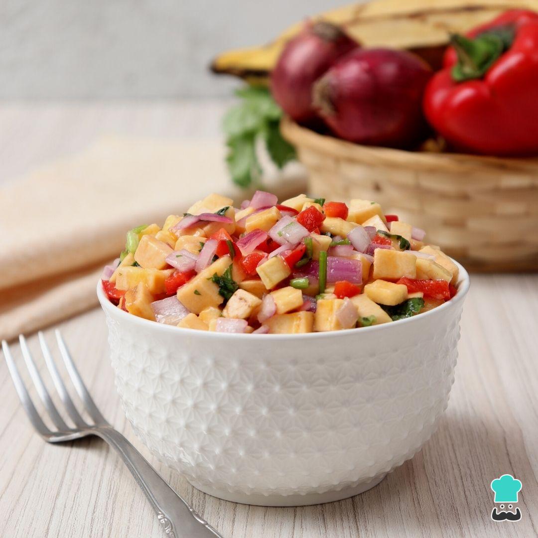Além de linda e super colorida, essa receita de vinagrete de banana é aquele tipo de receita versátil que faz sucesso tanto para acompanhar o almoço do dia a dia quanto para surpreender os convidados naquele churrasco de domingo. A estrela dessa receita é a banana da terra e, junto com a cebola roxa e o pimentão vermelho, traz muito sabor e cor para a mesa.